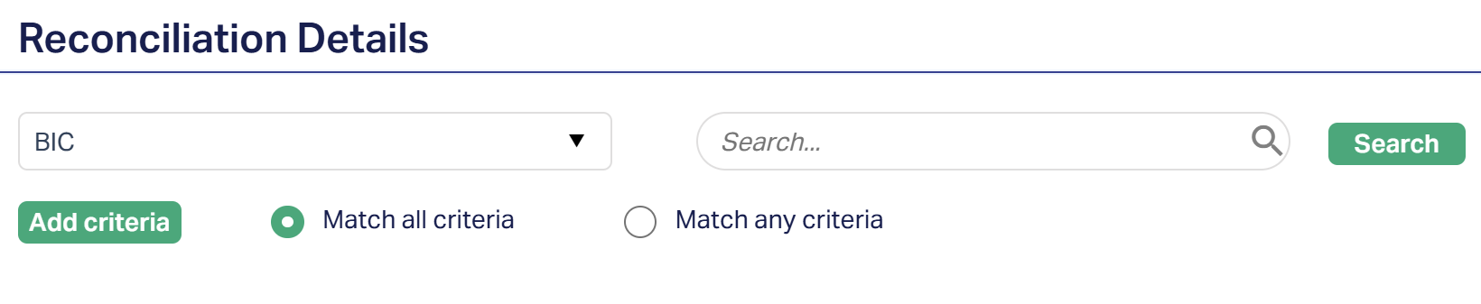 1. From the Payment Grid menu, click Nostro Reconciliation and then Reconciliation Details. The Reconciliation Details search page appears. Initially, no records are displayed by default.