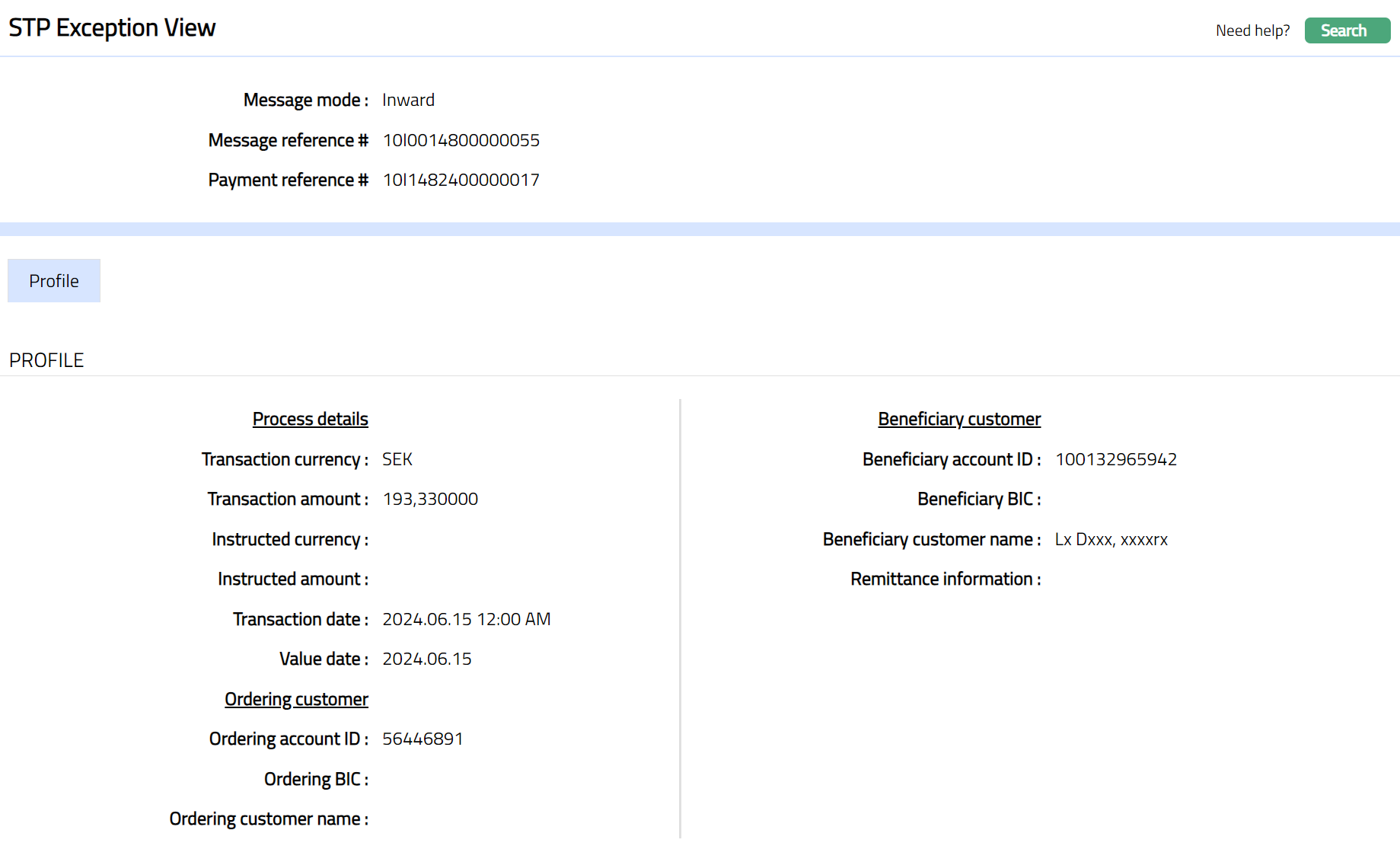 This function allows you to view those records which failed during STP Rule processing. It will display only the incoming failed records in the STP exception.