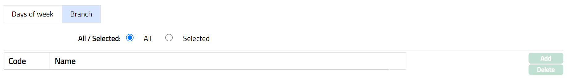 - By default, All radio button is selected so that this Time is available for all Branches.
