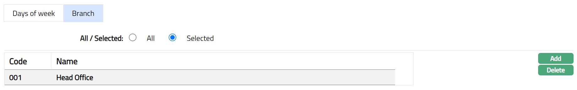 If you want to apply the cutoff time to only selected branches, you will then have to specify such branches by using the Add button.