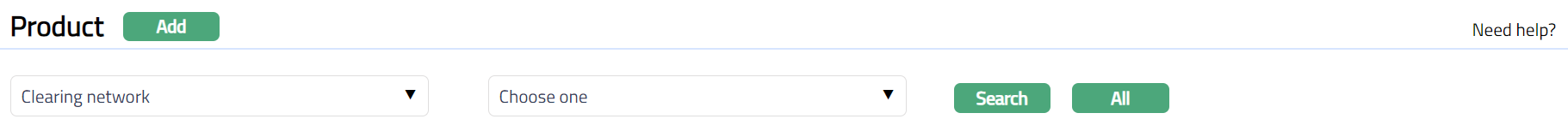- From PaymentGrid menu, click Settings, and then Product. Product Search page appears.