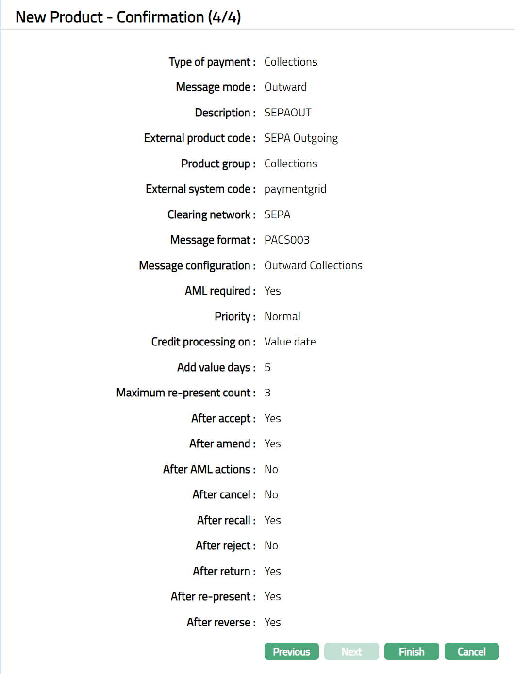 Product menu allows you to maintain the details of various products that are offered to the customers. Using this Product, you can configure the parameters for Straight Through Processing of the payment messages without any manual intervention.