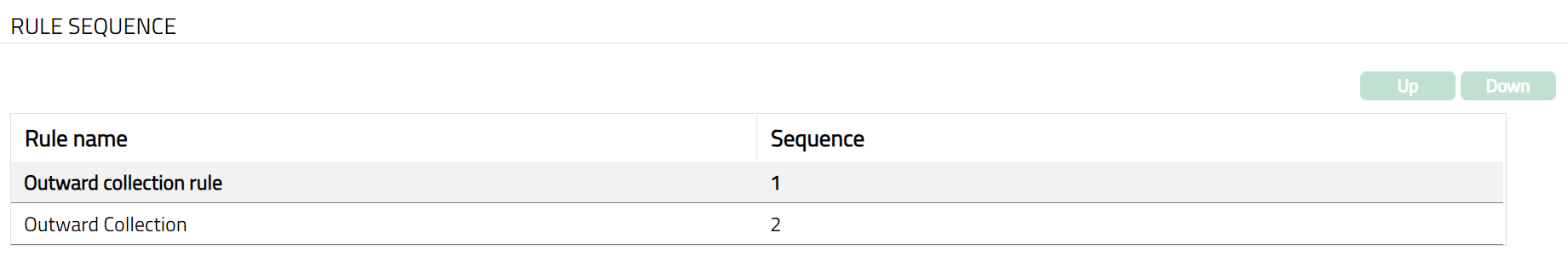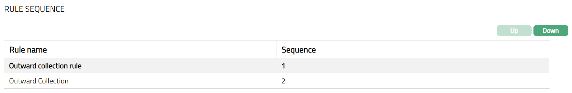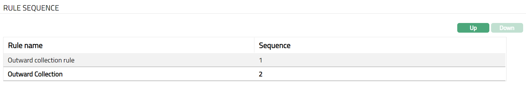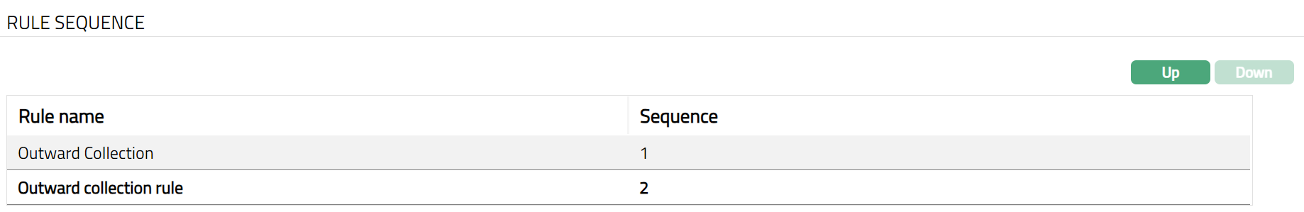 - All available Rules are displayed. Select any Rule Name as required and click Up or Down button. Sample screen shots shown below.