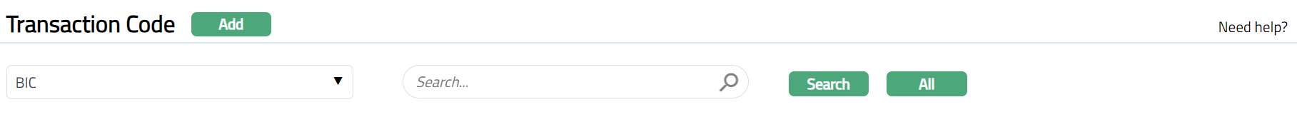 - From PaymentGrid menu, click Settings and, then Transaction Code. Transaction Code Search page appears.