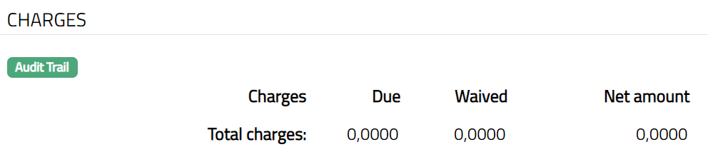 Charges denotes name of all the Charge Schemes applicable to the selected client account that are due and not yet liquidated, or, if any refund is due. If there is no charge due to be collected / refunded, only the Total charges will be shown with zero.