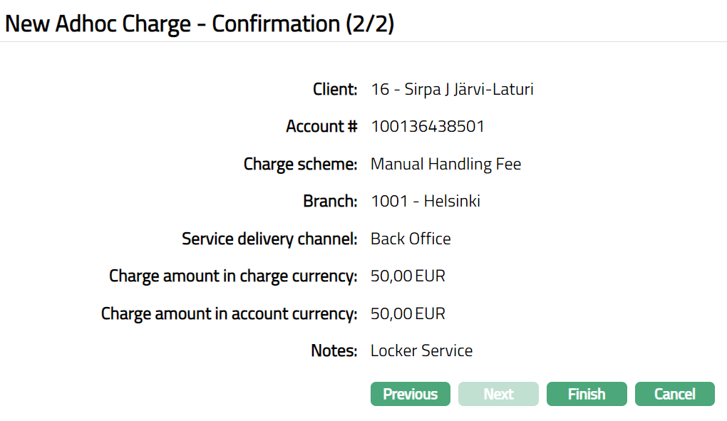 Click Next. The New Adhoc Charge -- Conformation (2/2) page will appear.
