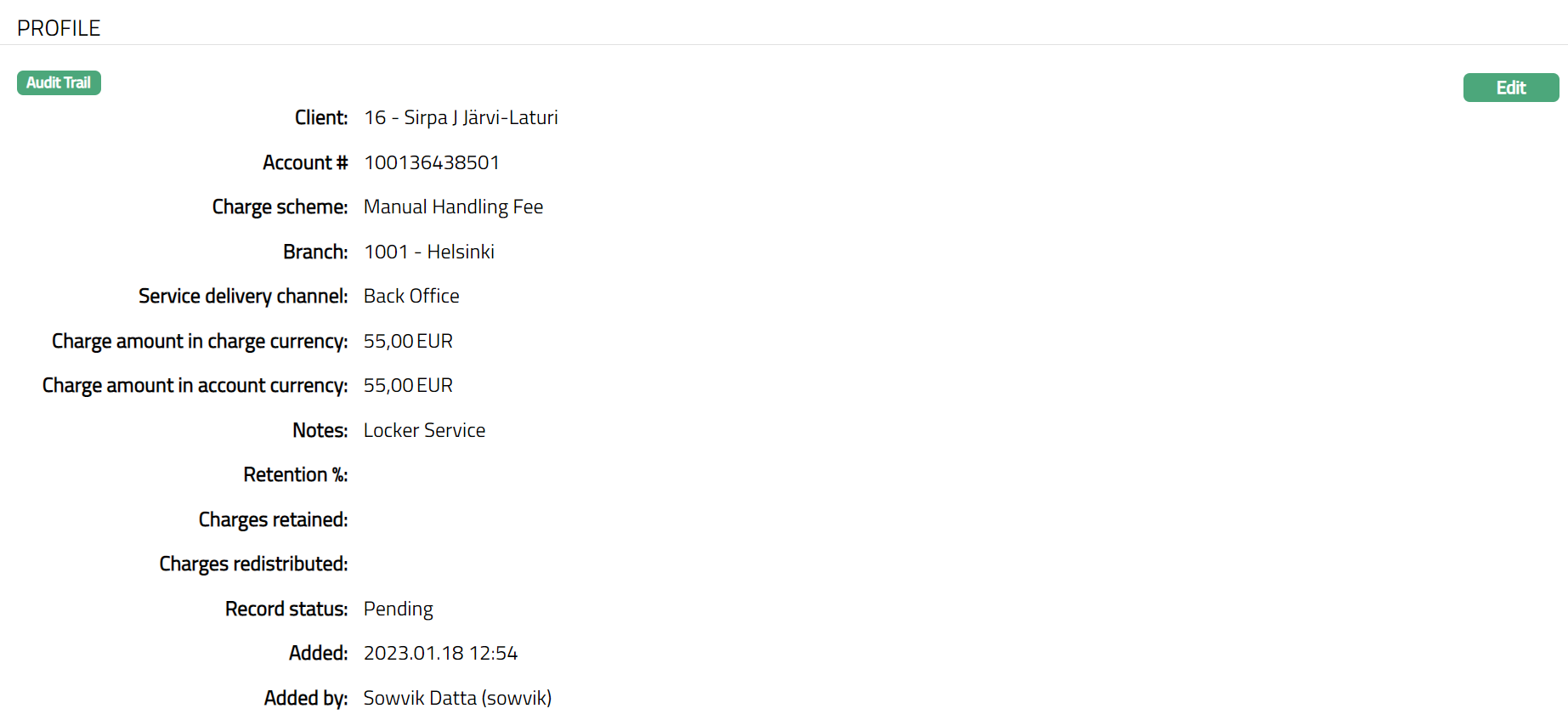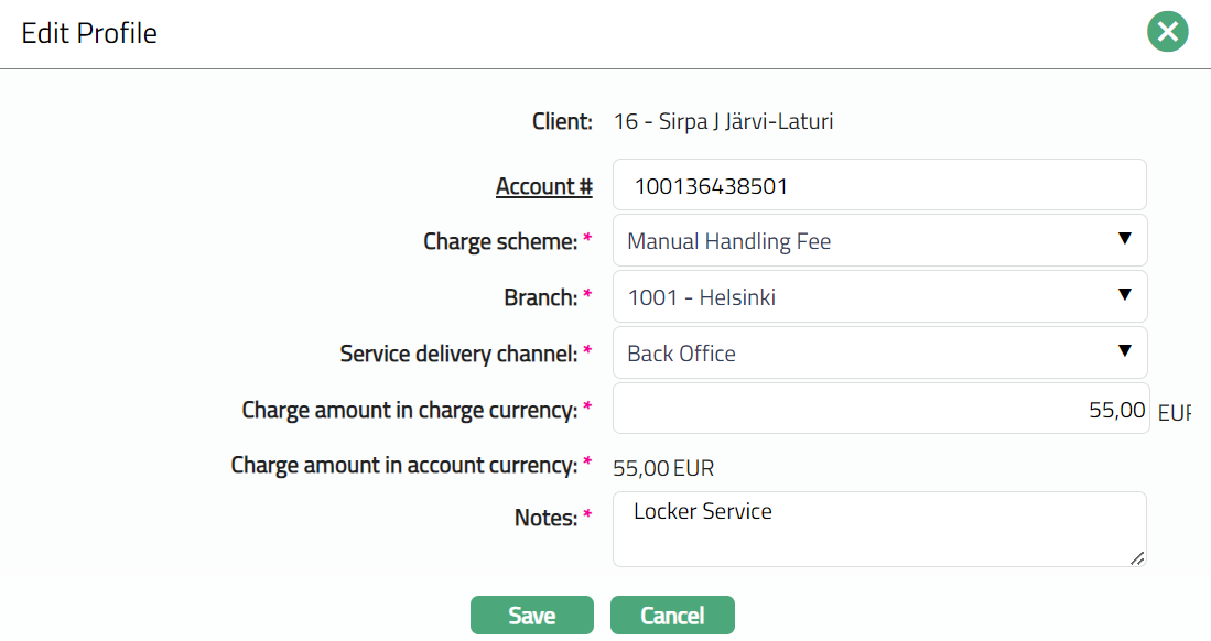 Note: Except Client and Charge amount in account currency all other fields are editable.