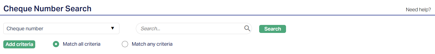 Multiple records may be displayed if several cheque books or cheques meet the entered criteria.