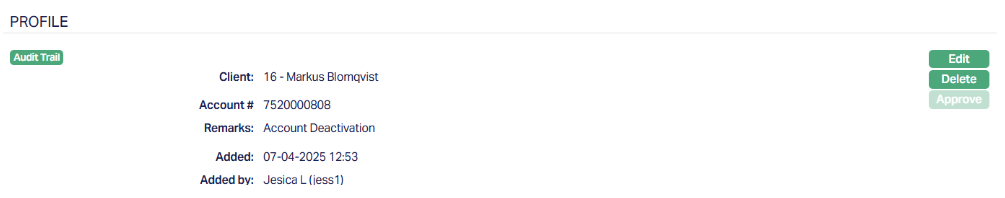 Approved shows the date and time when the record was approved and Approved by displays the user ID and full name of the person who approved the record..