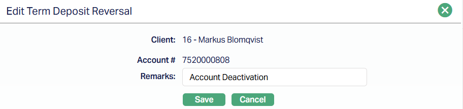 10. Click Finish. Term Deposit Reversal page will appear.