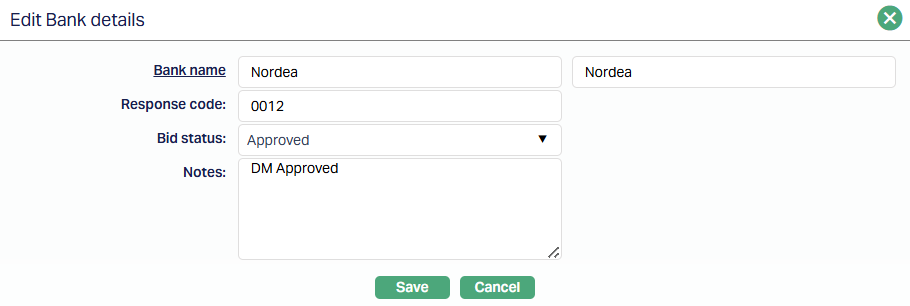 5. Bid Status - Select the status of the bank's response. Available values include: