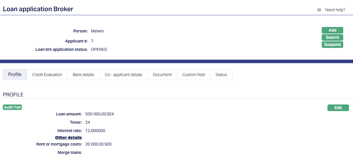 Note: You can edit the Loan Application Broker details after creation, including after bank approval. Editing is restricted only when the loan status becomes Disbursed.