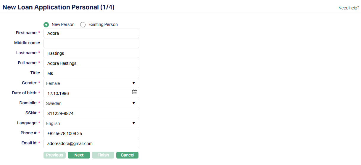 2. Click Add. The New Loan Application Personal (1/4) page appears.