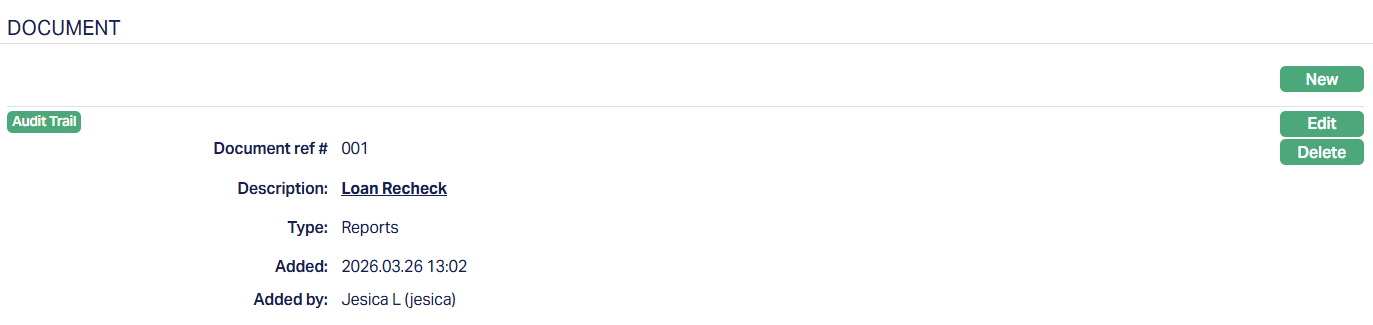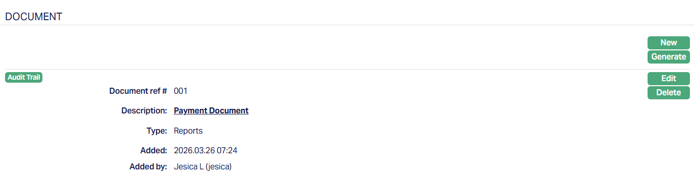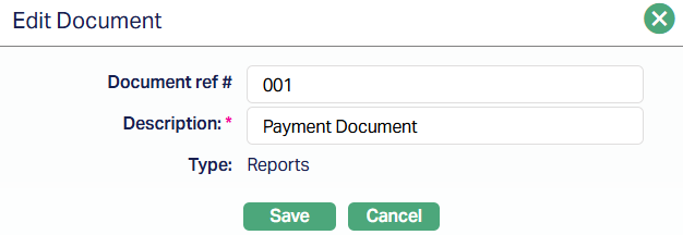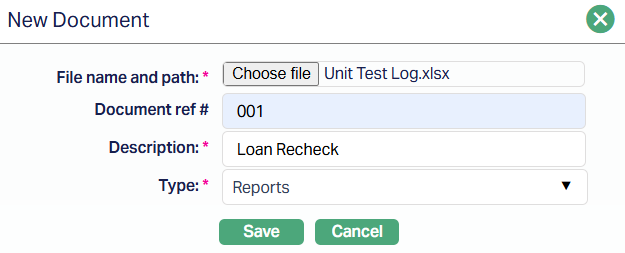 6. Select Type of the document uploaded. The document types should have been maintained using Admin → System codes → Documents → Document types. Once entered, this cannot be edited.