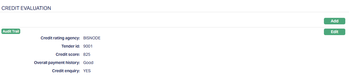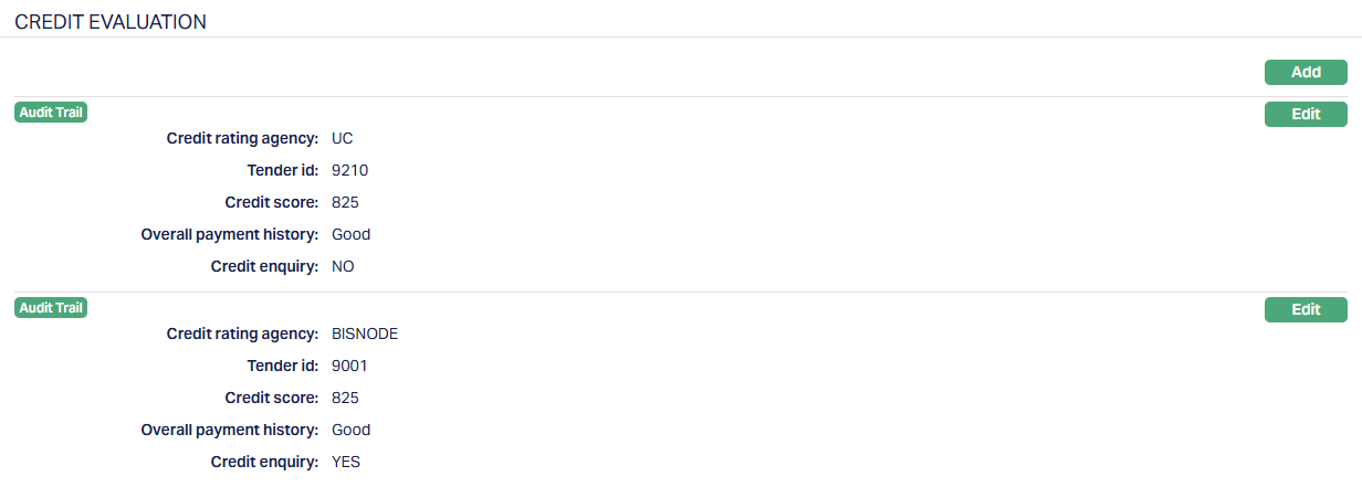 All added records are displayed in the Credit Evaluation section, and you can edit each record individually.