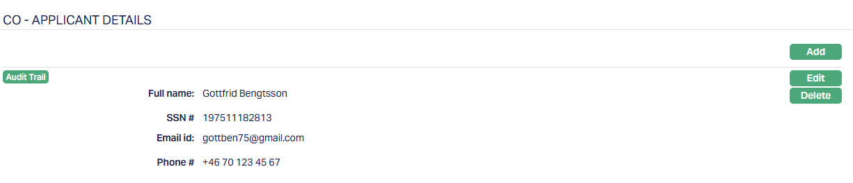 2. Click Save. The Co-Applicant Details tab appears with the edited details.