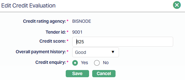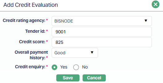 7. Click Save. The Credit Evaluation page appears with the addeddetails.