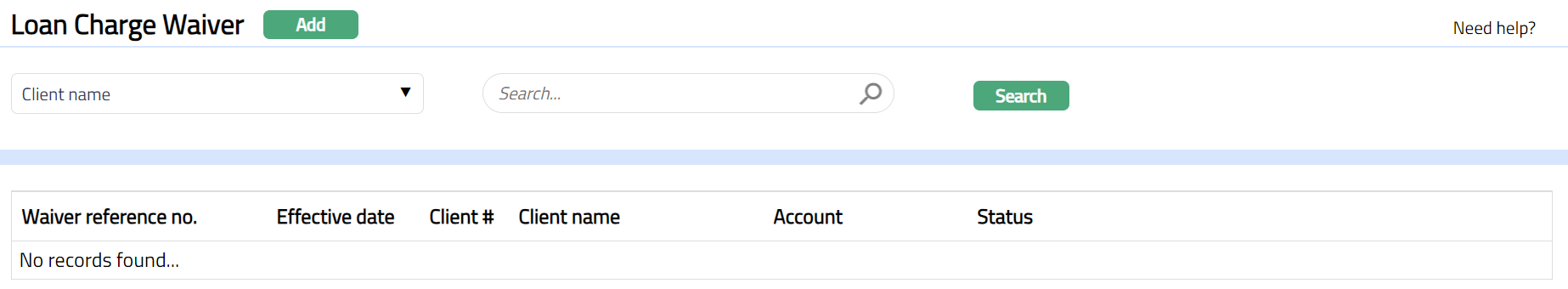 - From Retail menu, click Loans and then Charge Waiver. Loan Charge Waiver page appears.