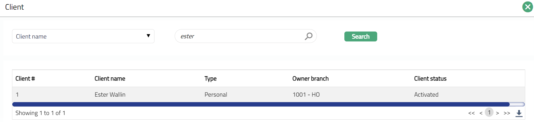 - Select Client by clicking client hyperlink. Client search page appears where you can search for a client with relevant criteria and select the required client. You can also input the client's name and select the required client from the list displayed by Aura.