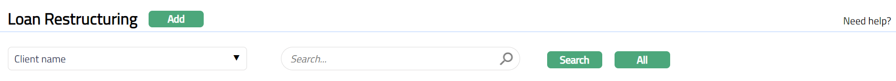 - From Retail menu, click Loans, and then Loan Restructuring. Loan Restructuring Search page appears.