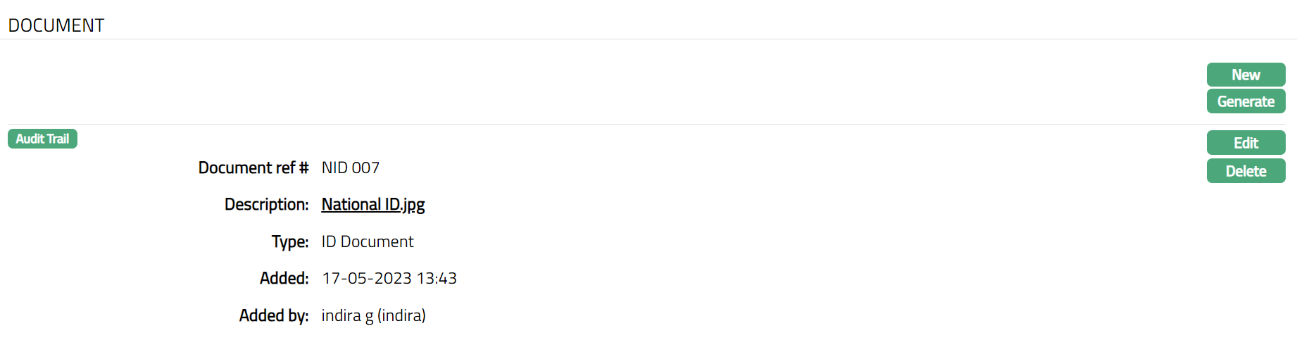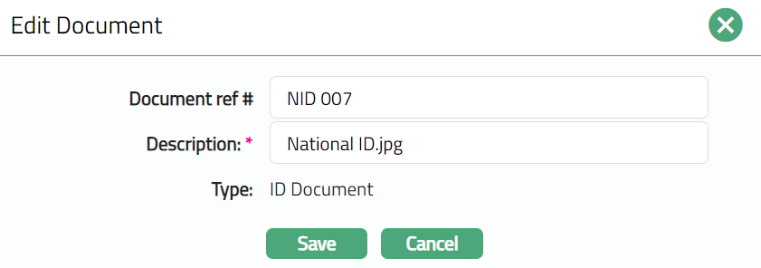 - Click Save. Document page appears with the edited details.