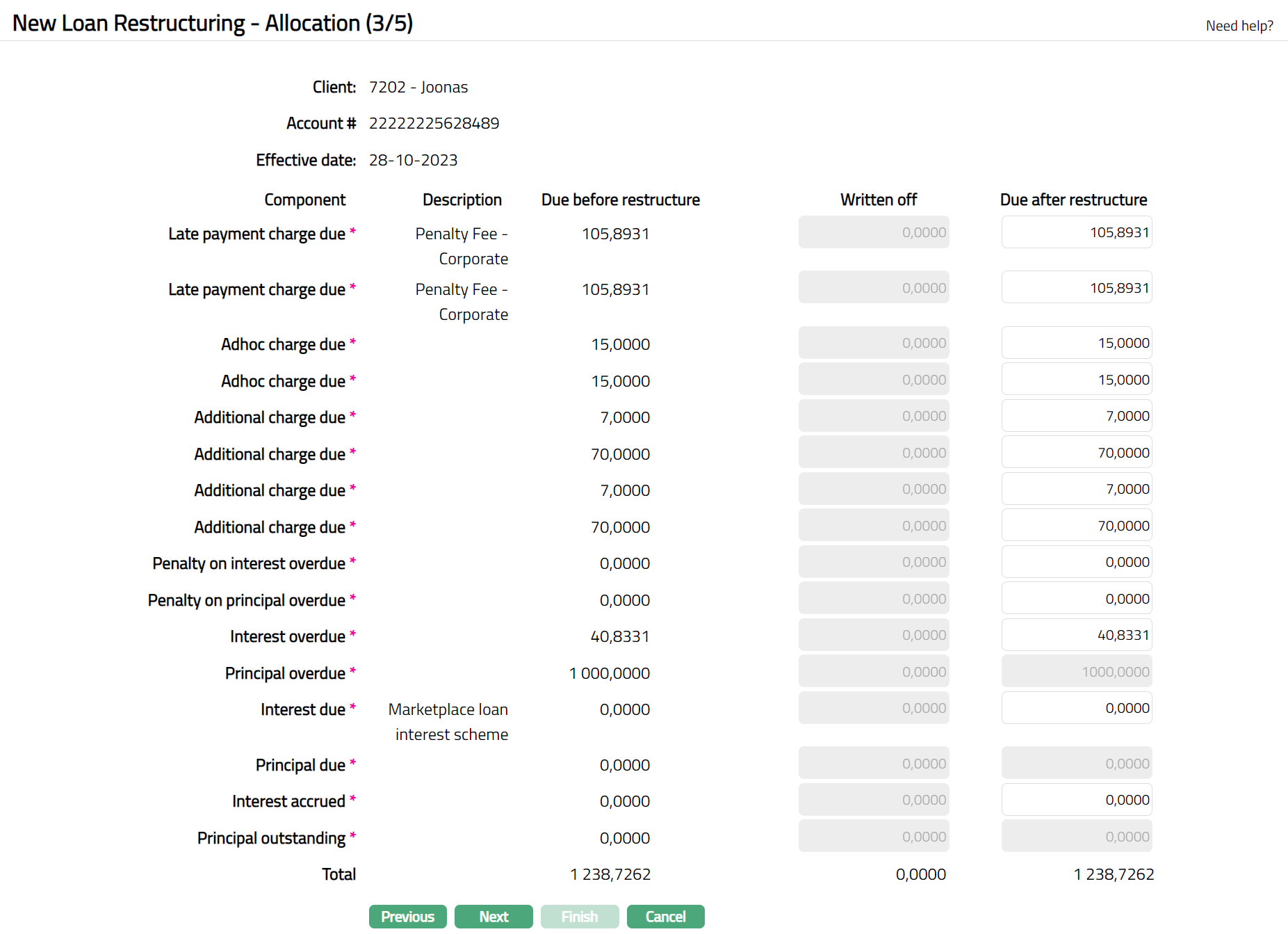 - Click Next. New Loan Restructuring -- Allocation (3/5) page appears.