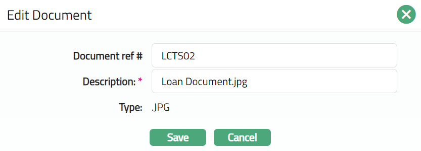 - Click Save. The Document page appears with the edited details.