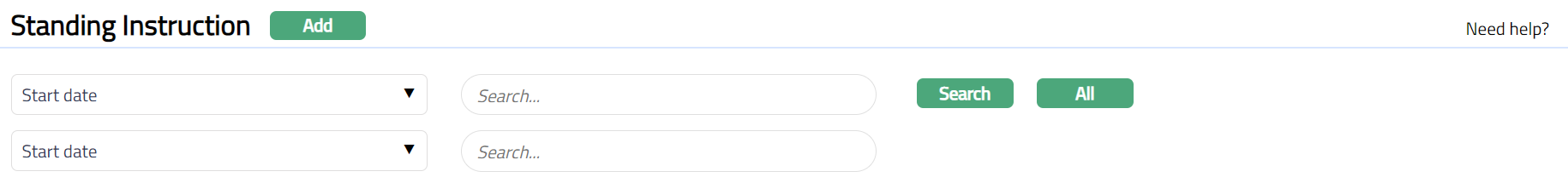 Standing instructions page allows the user to create and maintain Standing instructions.