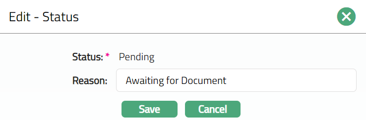 Status tab allows you to view the status of the Standing Instruction and to add a reason for it.