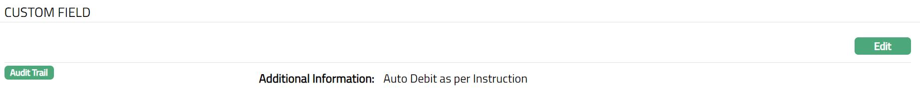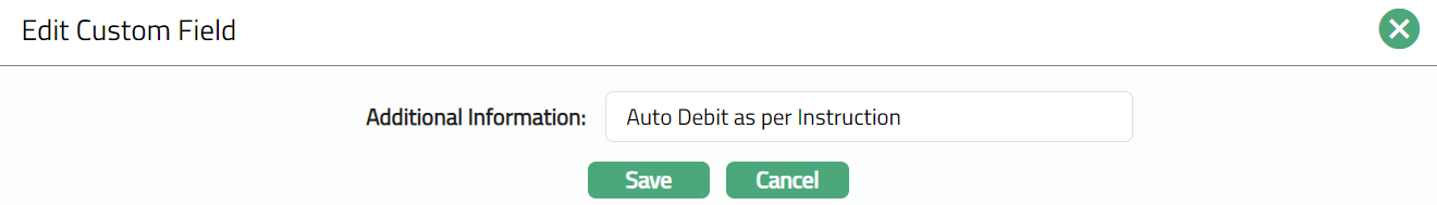 - Click Edit. Edit Custom Field page appears. In the below example one custom field -- Additional Information has been mapped to the account as shown below.