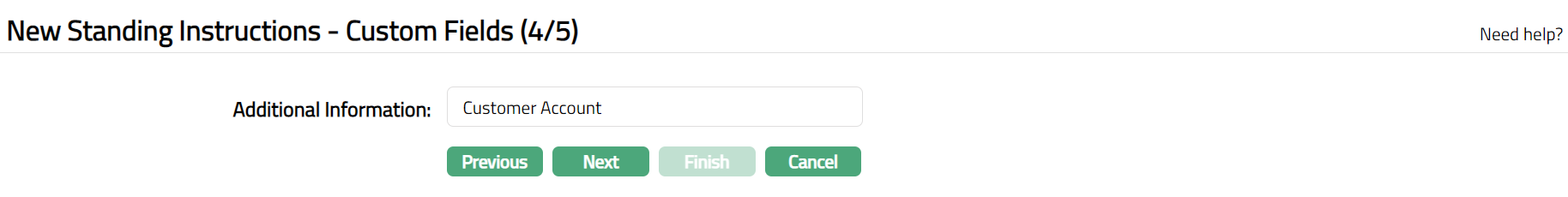 Click Next. New Standing Instruction Customer Field page (4/5) appears.