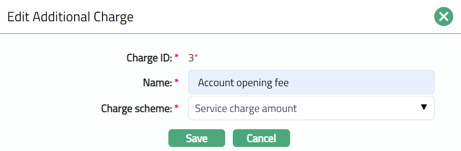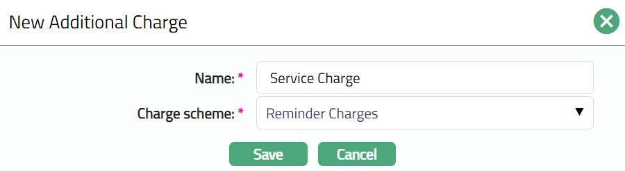 The Additional Charge tab allows you to add, view and maintain additional charges for the loan account
