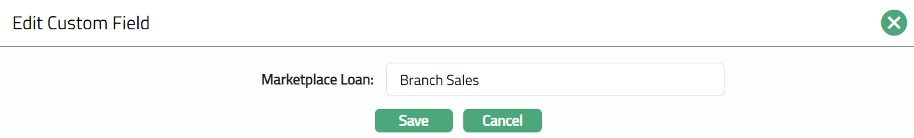 Click Edit. Edit Custom Field page appears. In the following illustration, one custom field Loan Category has been mapped to the Product as shown below: