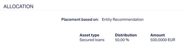 The Allocation tab is used to view the allocation details of the investments made or to be made through the Placement Plan.