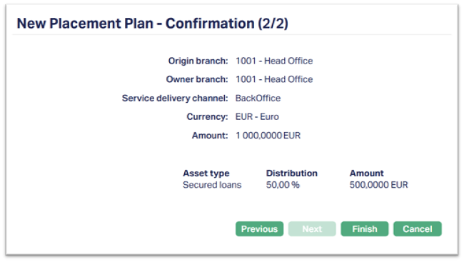Click Next. The New Placement Plan - Confirmation (2/2) page appears.