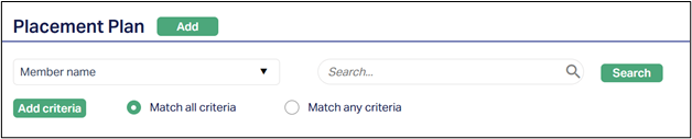 Select the client for the Placement Plan by clicking the Member hyperlink, which opens up a Client Search page from the list of available/existing Clients maintained in CRM > Clients > Maintain. Alternatively, you can type one or more characters in the text-box and select the client from the list provided by Aura.