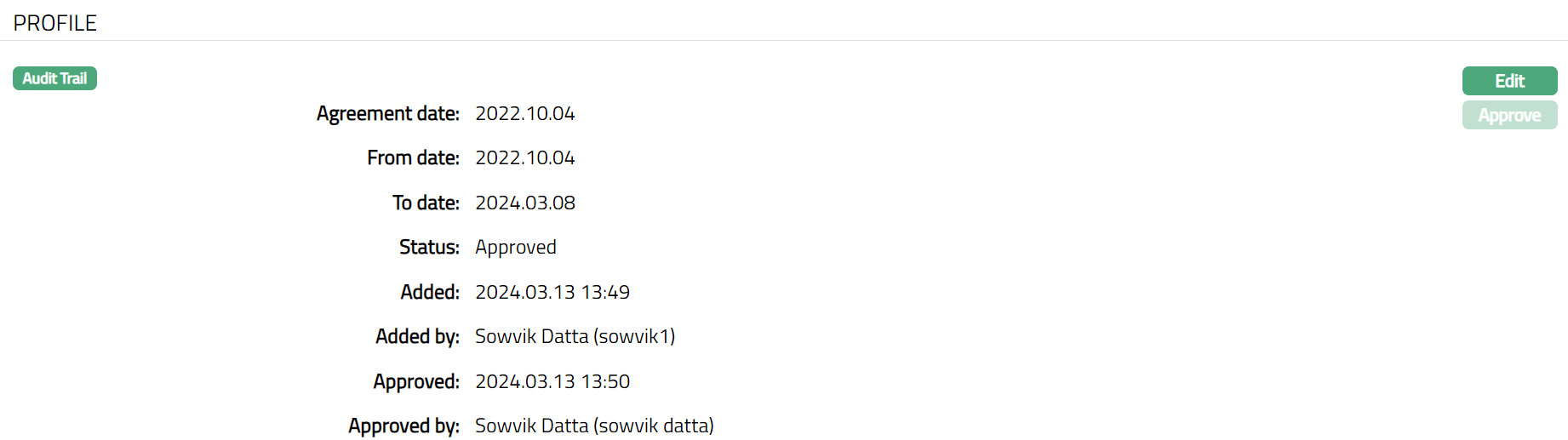 Approved field denotes date on which the record was approved. This is displayed only if the record is approved.