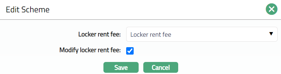 When you want to levy rent for locker allocated, select Locker rent fee from the drop-down list of all Periodic based, Flat charges maintained under Admin > Pricing > Charges > Charge Scheme. The charge amount is collected when agreement is signed i.e., when the agreement status becomes Activated or Renewed. Renewal is done by extending the agreement To date.