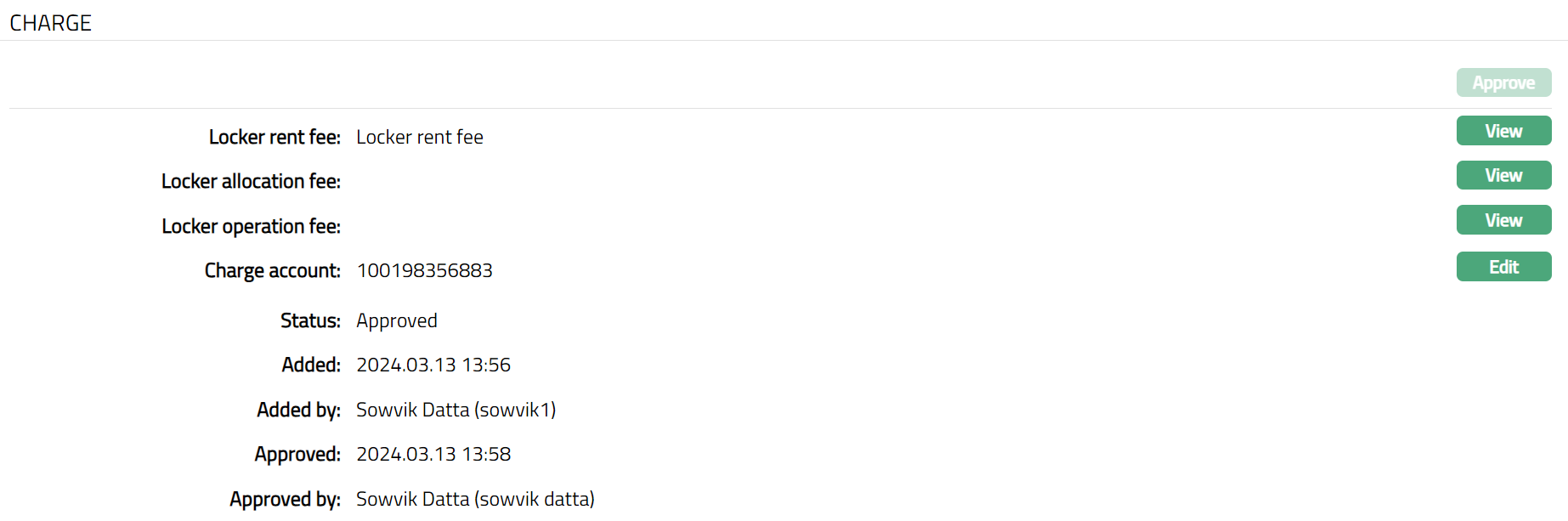 Note: All the charges Locker rent fee, locker allocation fee, locker operation fee are allowed for edit.