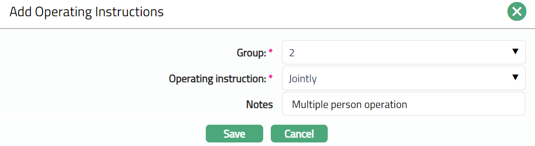 Select Operating instruction whether Single, Jointly as appropriate for this Group.