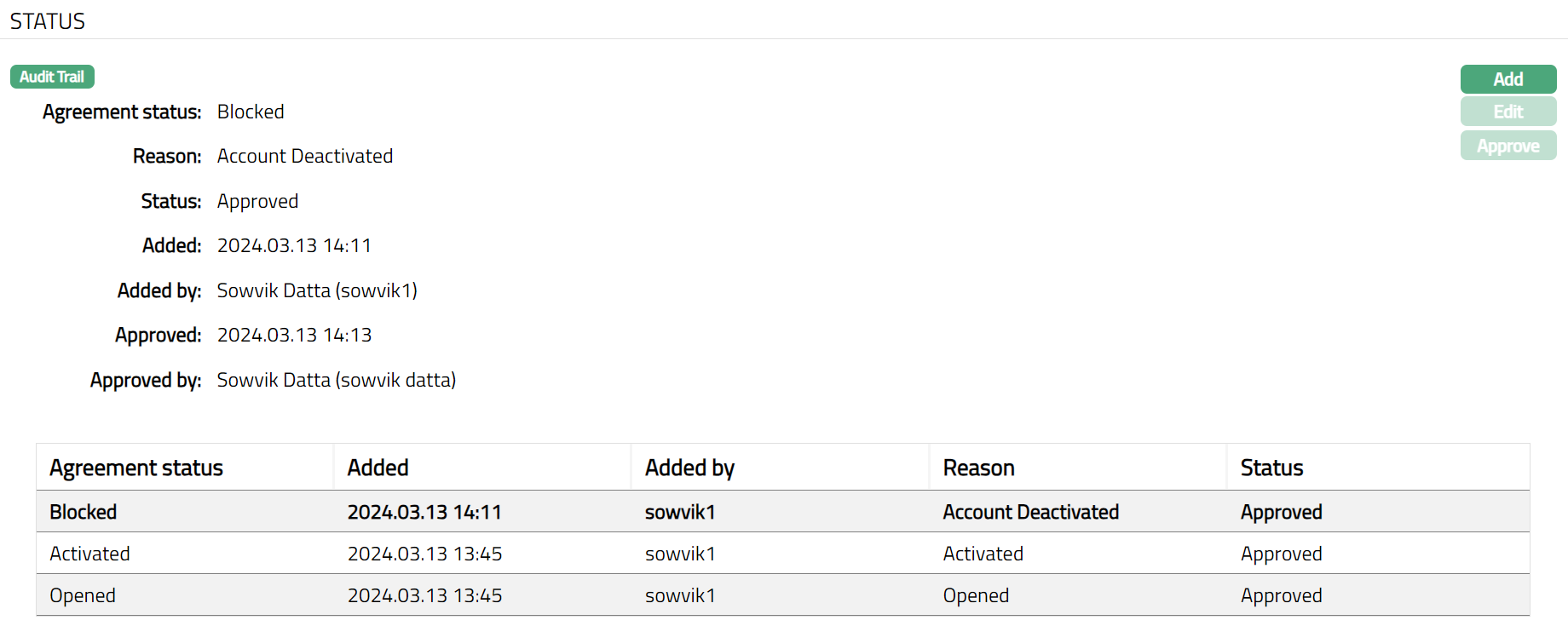 Functions: Add, Edit, Approve.