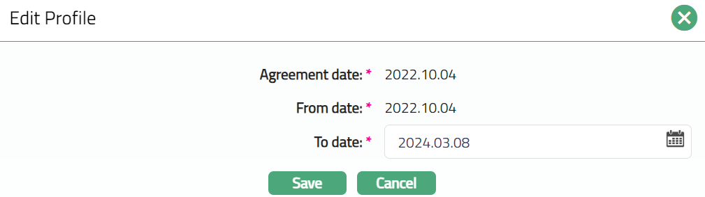 Note: Only To date field is editable.