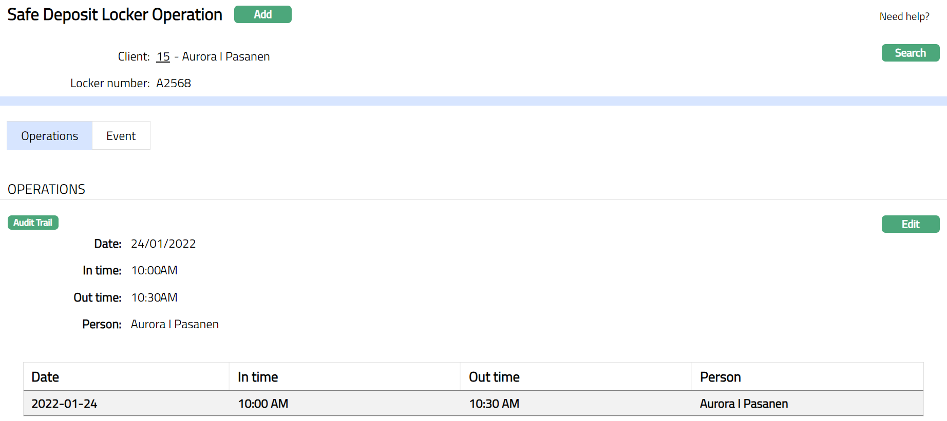 - From Retail menu, click Safe Deposit Locker and then Operation. Safe Deposit Locker Operation search page appears.