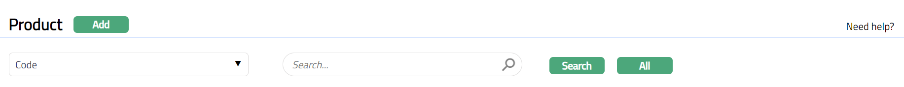 - From the Retail menu, click Settings, and then Product. The Product Search page appears. All products available in Aura appear on the page.