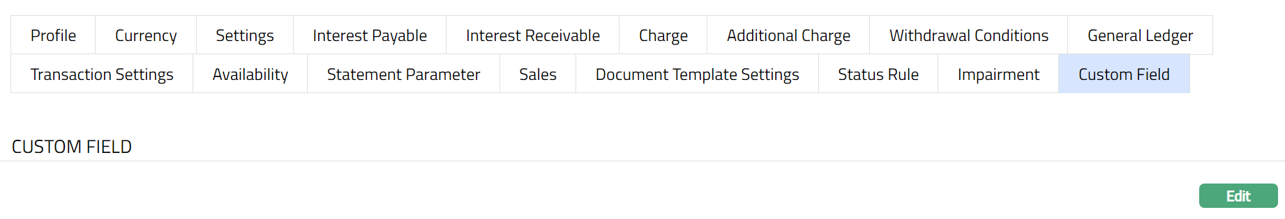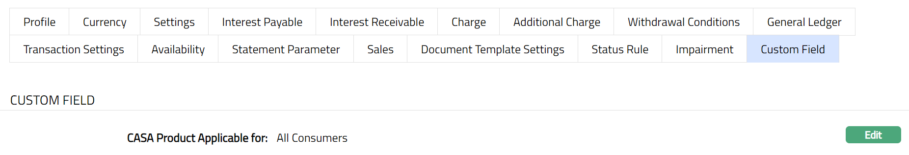 Click Edit. The Maintain Custom Field page appears. In the following illustration, custom field called CASA product applicable for is mapped to the Product as shown below: