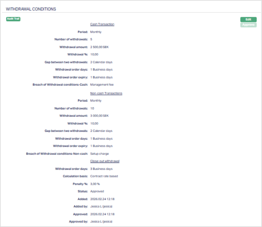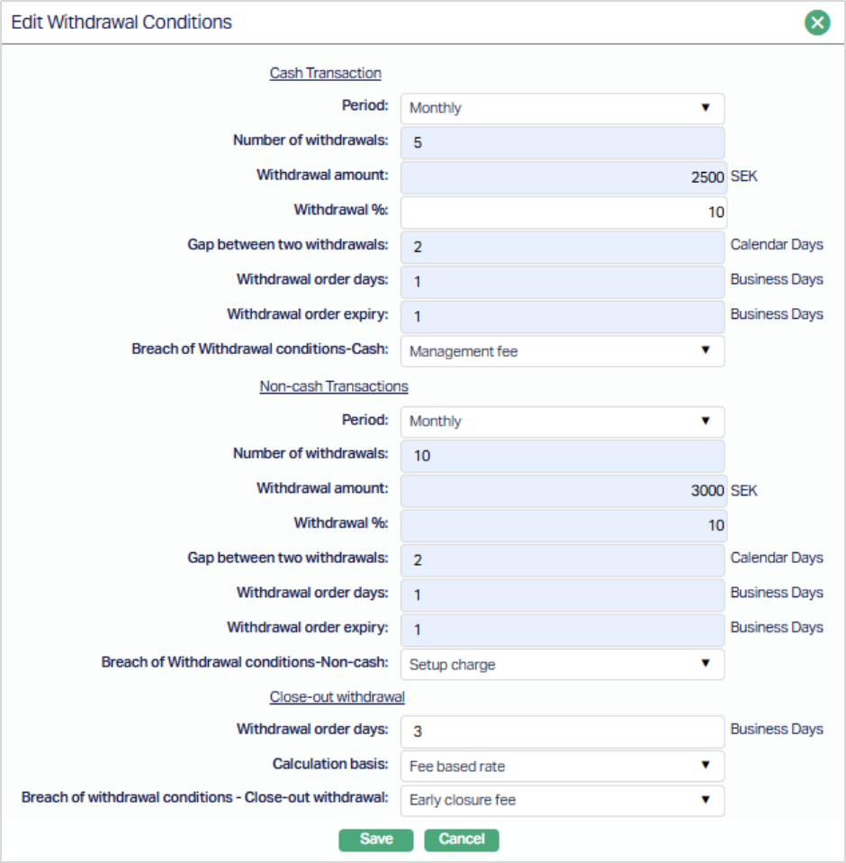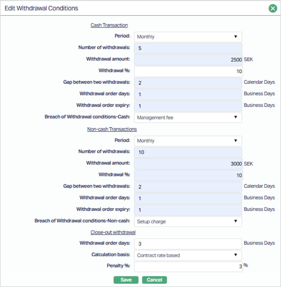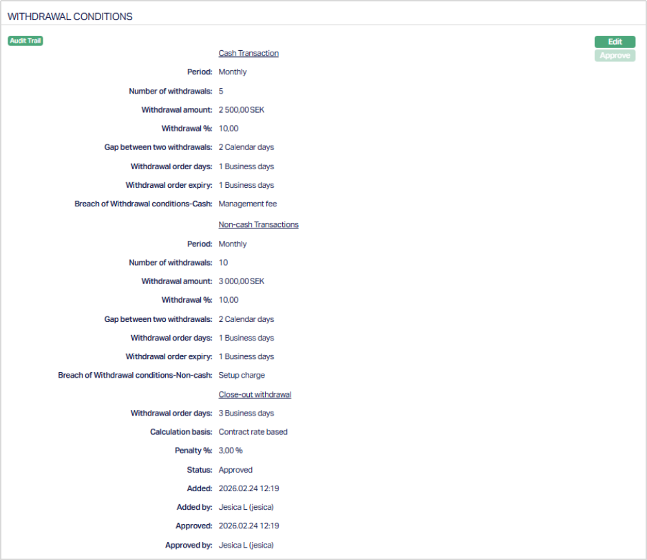 - Withdrawal Conditions