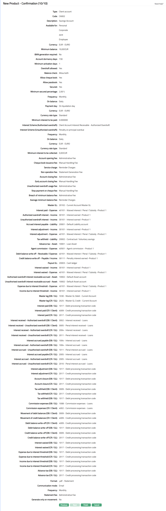 | 2 | Interest paid - Expense | for accounting the interest paid on accounts under this product. | ledger type Expense |