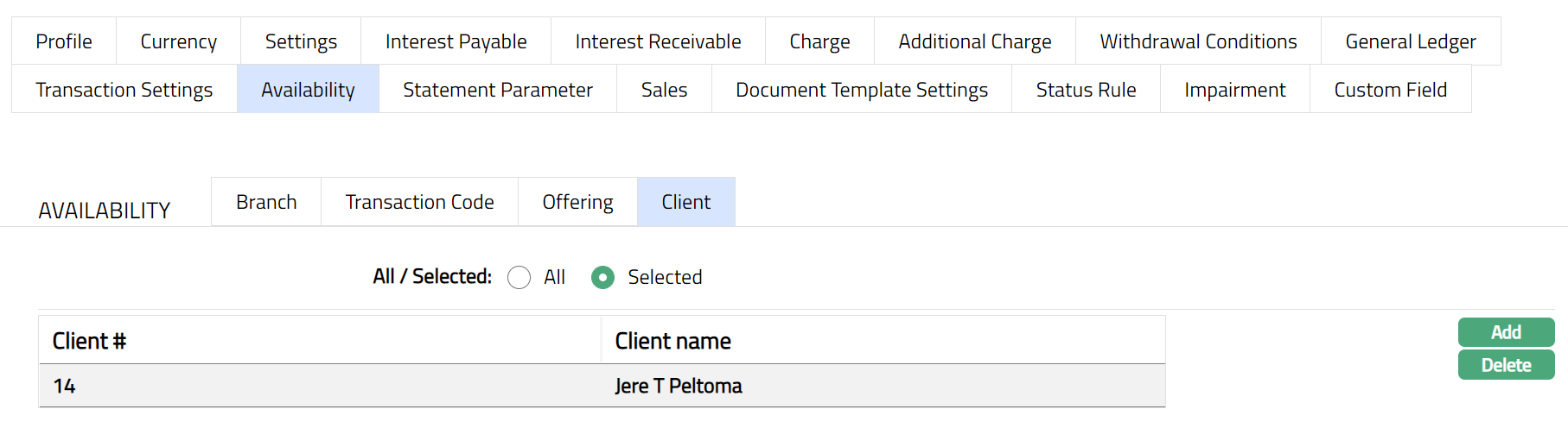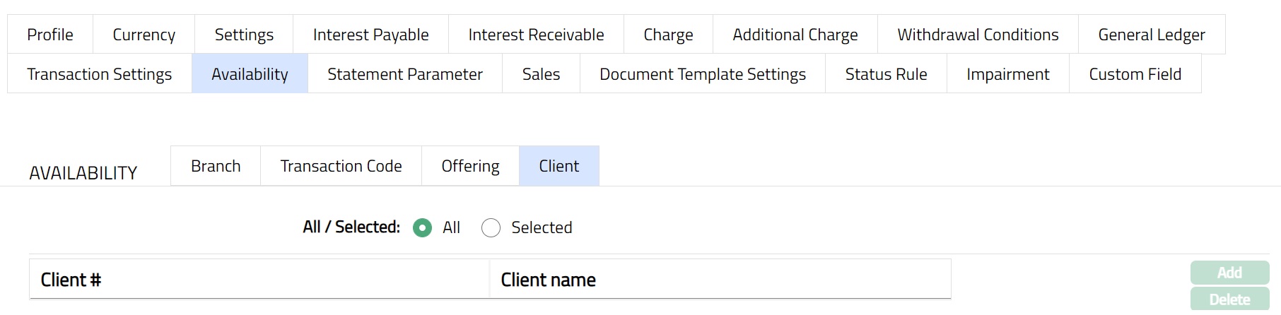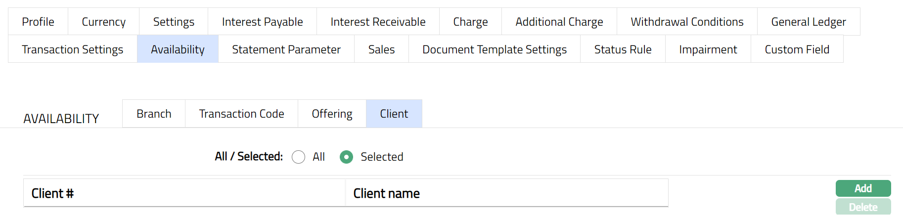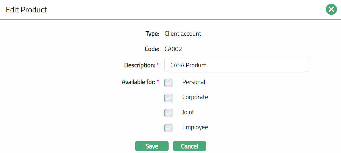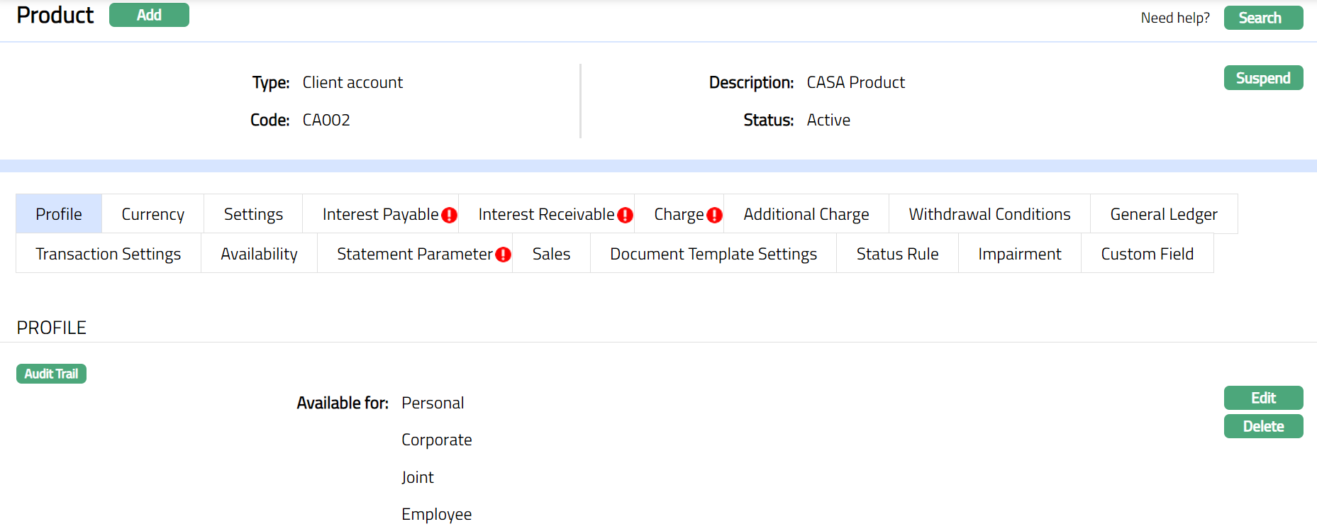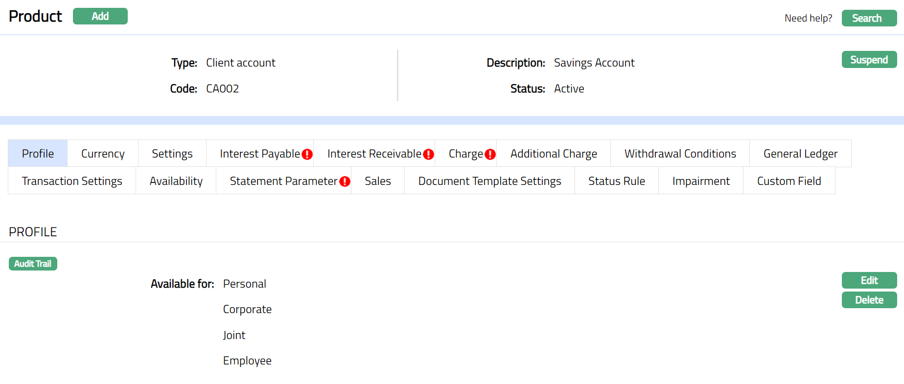 Product maintenance menu allows you to maintain the details of Client Account Products that are offered by your bank to its customers. Once the product is created, the values in these products are defaulted to the Client Accounts that are created under the product, with an option to change the details at the account level.