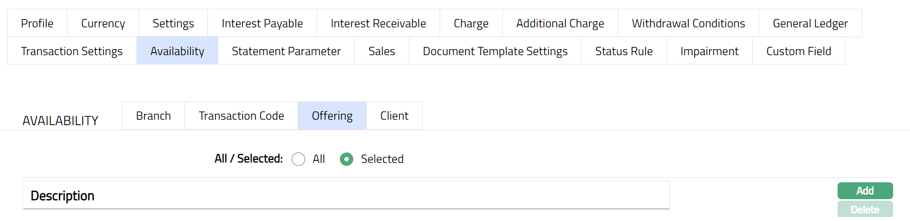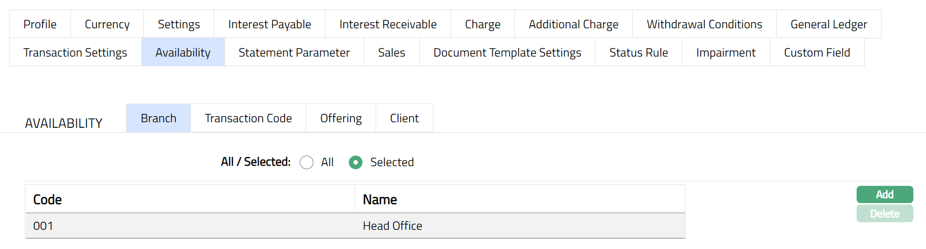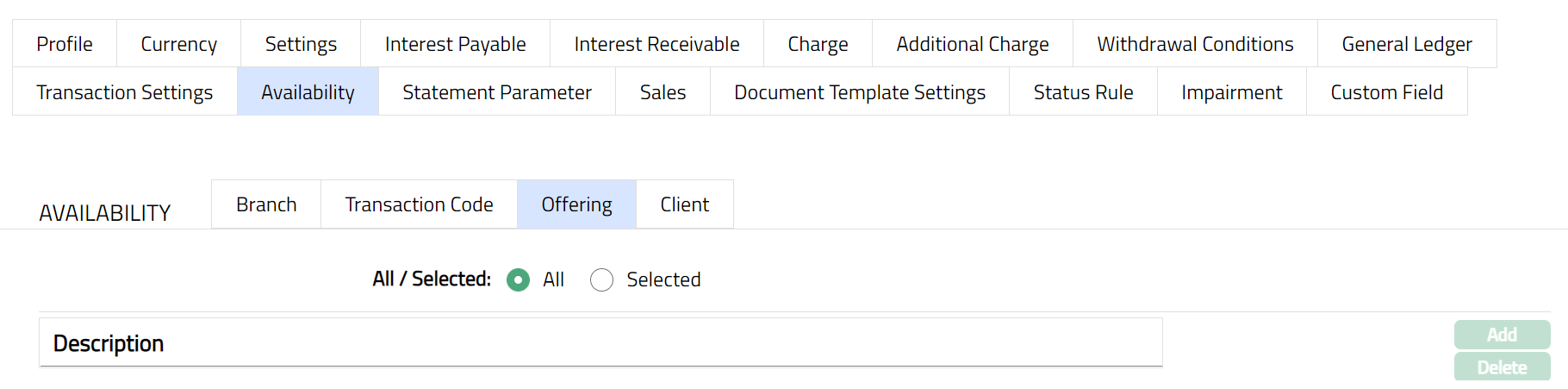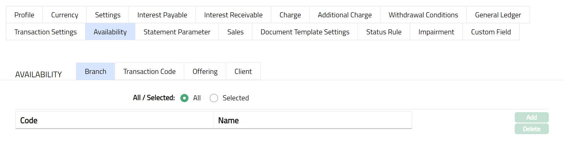 Select the Currency for the Product from the dropdown list of GL Currencies. More currencies can be added during Edit using the Currency tab, once the product record is created. Accounts for the product can be opened only in the selected currencies.