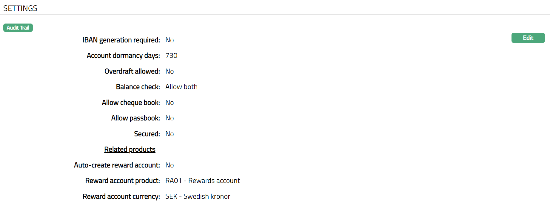 Click Yes or No radio button for IBAN generation required for New product. During account creation under the product, if this has been selected as Yes, Aura will automatically create IBAN according to the IBAN format maintained at the entity level.